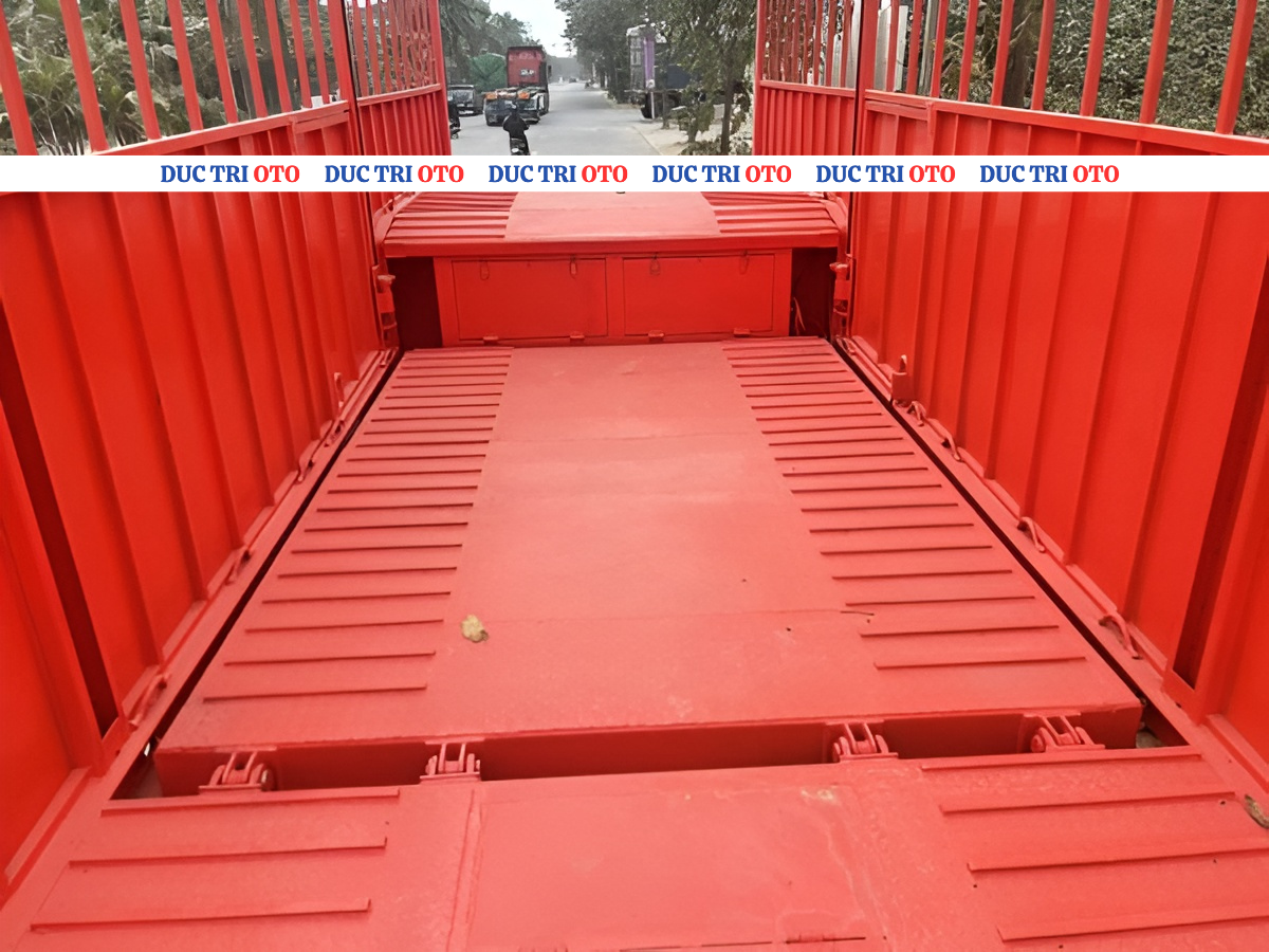 • Mặt sàn thiết kế chuyên dụng: Mặt sàn dạng lưới hoặc dập lỗ chống trượt, kết hợp với hệ thống tăng bua, dây đai và khóa bánh xe chuyên dụng, giúp cố định xe vững chắc, bảo vệ lốp và hệ thống treo của xe được vận chuyển.