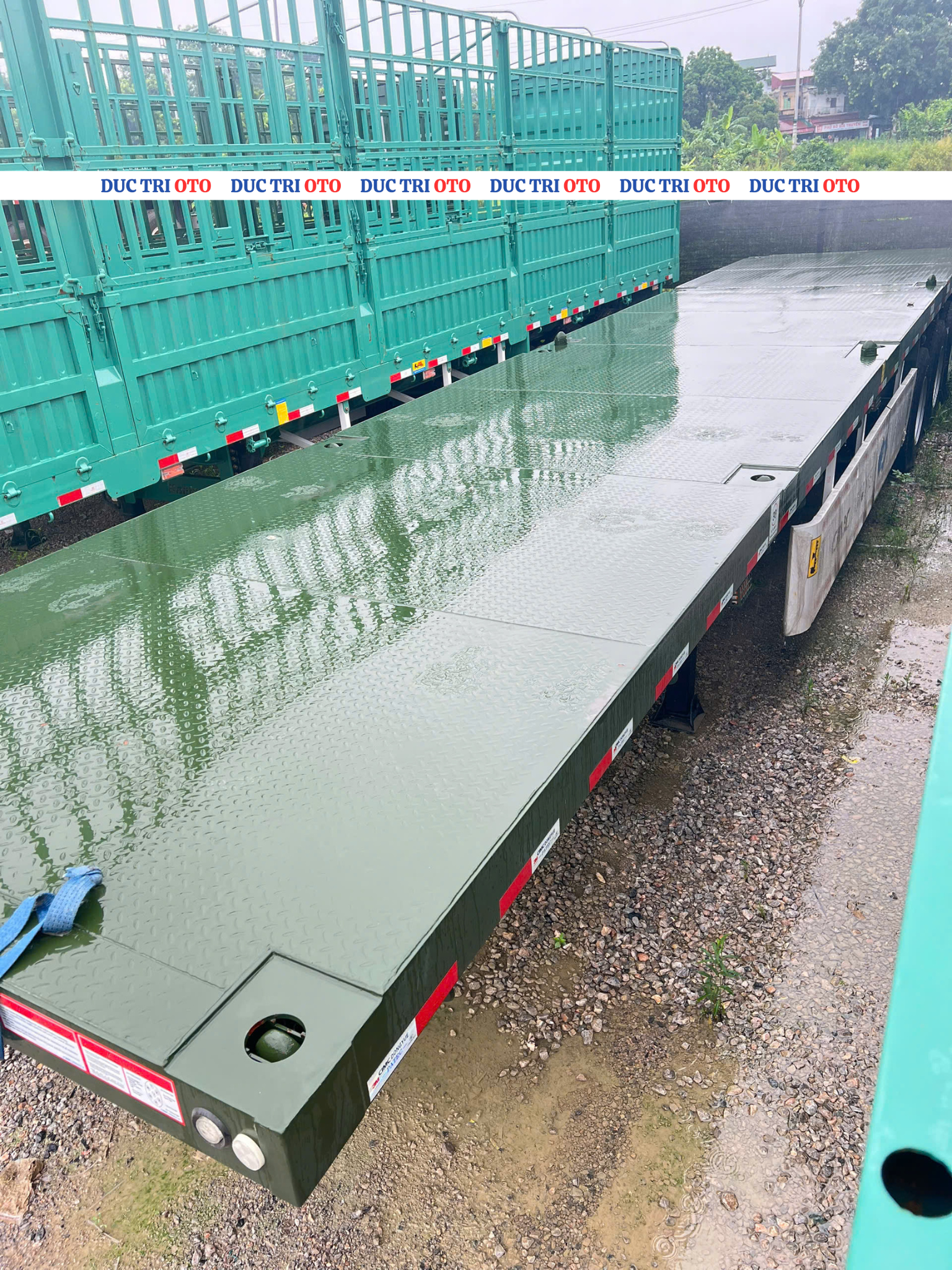 • Sàn xe chống trượt: Mặt sàn được thiết kế bằng thép tấm có độ bám cao, trang bị đầy đủ hệ thống khóa gù container và móc chằng hàng, đảm bảo an toàn tuyệt đối cho mọi loại hàng hóa.