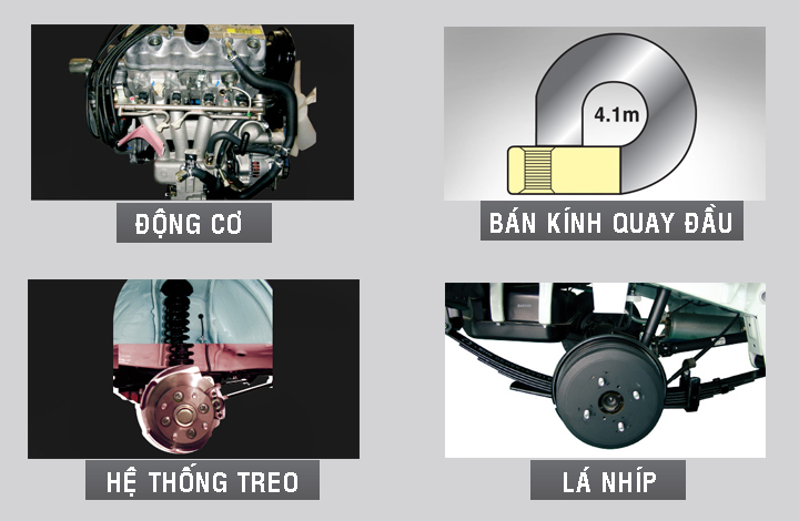 Hệ thống treo khỏe – thắng đĩa an giảm sóc cao giúp hàng hóa trong xe được ổn định hơn.